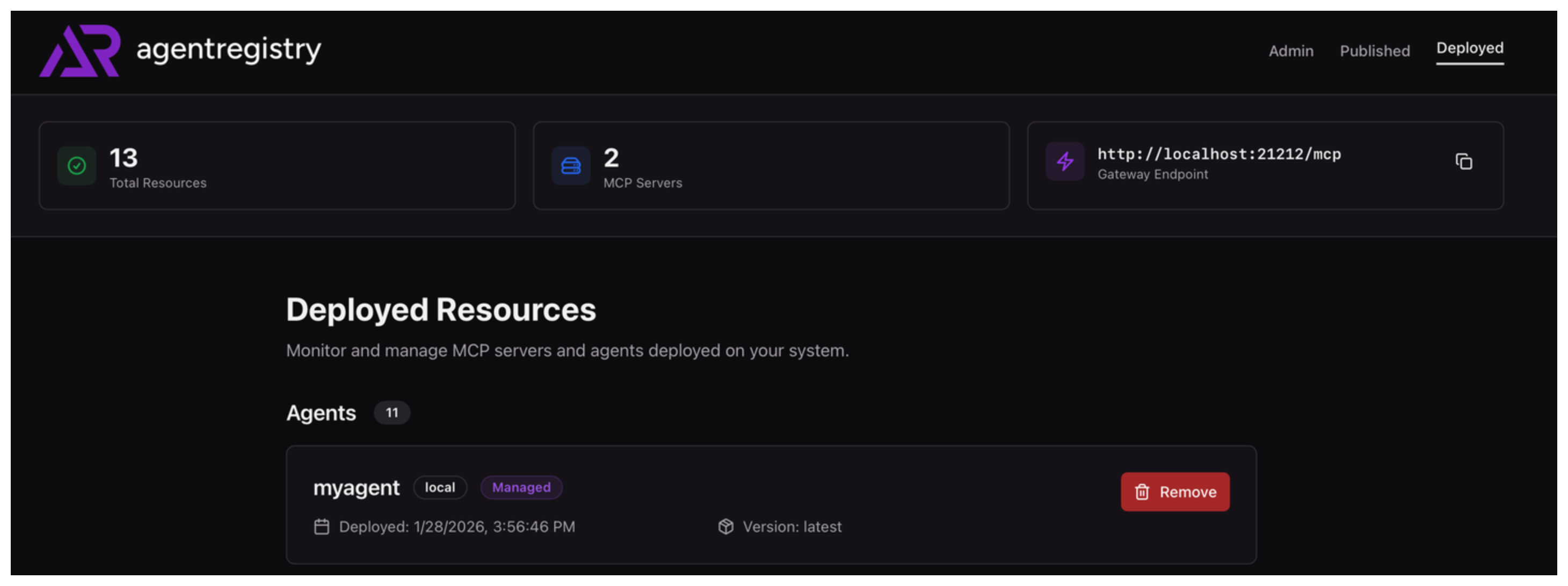In the agentregistry UI, go to the Deployed view and verify that you see your
